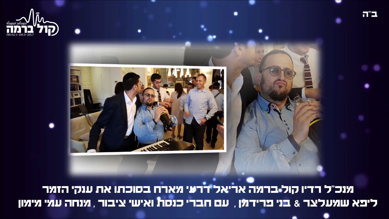 אריאל דרעי מנכ"ל רדיו קול ברמה מארח בסוכה את גדולי הזמר ליפא שמעלצר בני פרידמן , בהגשת שר השמחה עמי מימון , אורחי כבוד: ח"כ יעקב מרגי , הנגיד אייל משיח , הרב ישי סקאט , ואורחים נוספים. האזנה מצויינת